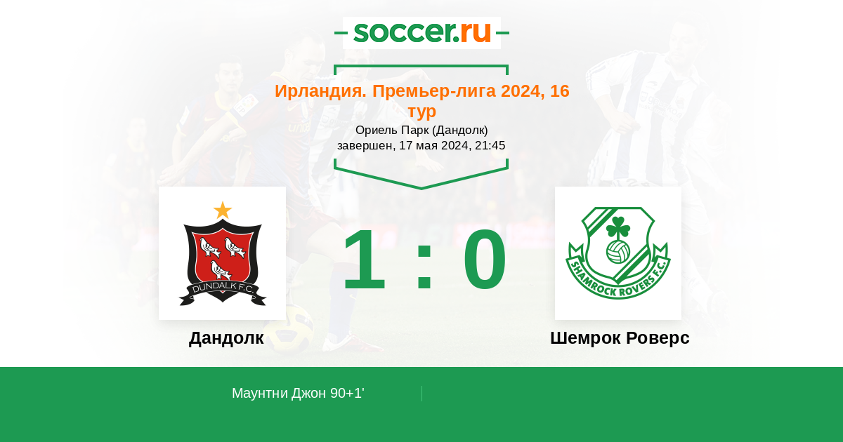 Протокол матча Дандолк против Шемрок Роверс