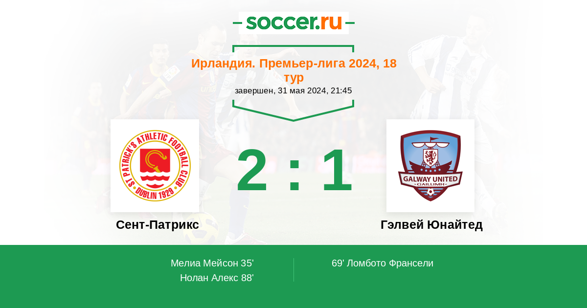 Протокол матча Сент-Патрикс против Гэлвей Юнайтед