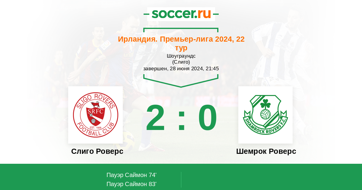 Протокол матча Слиго Роверс против Шемрок Роверс