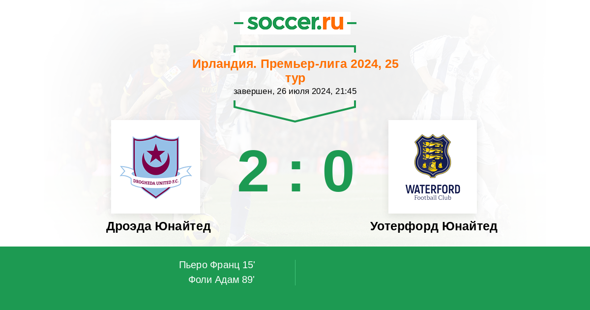 Протокол матча Дроэда Юнайтед против Уотерфорд Юнайтед