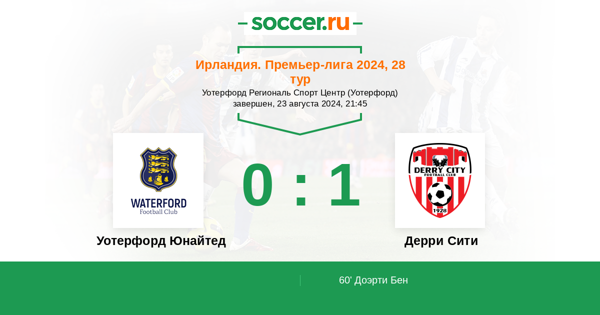 Протокол матча Уотерфорд Юнайтед против Дерри Сити