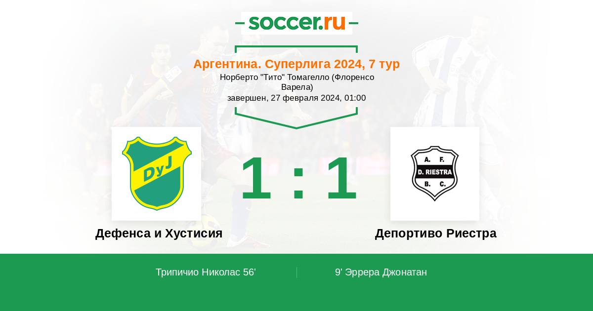 Протокол матча Дефенса и Хустисия против Депортиво Риестра