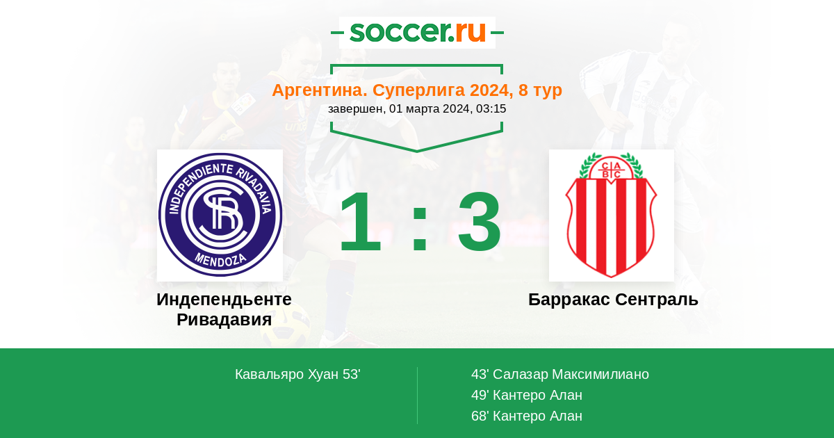 Протокол матча Индепендьенте Ривадавия против Барракас Сентраль