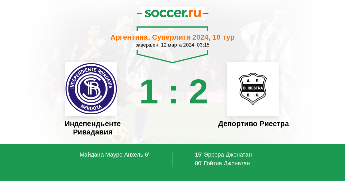 Протокол матча Индепендьенте Ривадавия против Депортиво Риестра