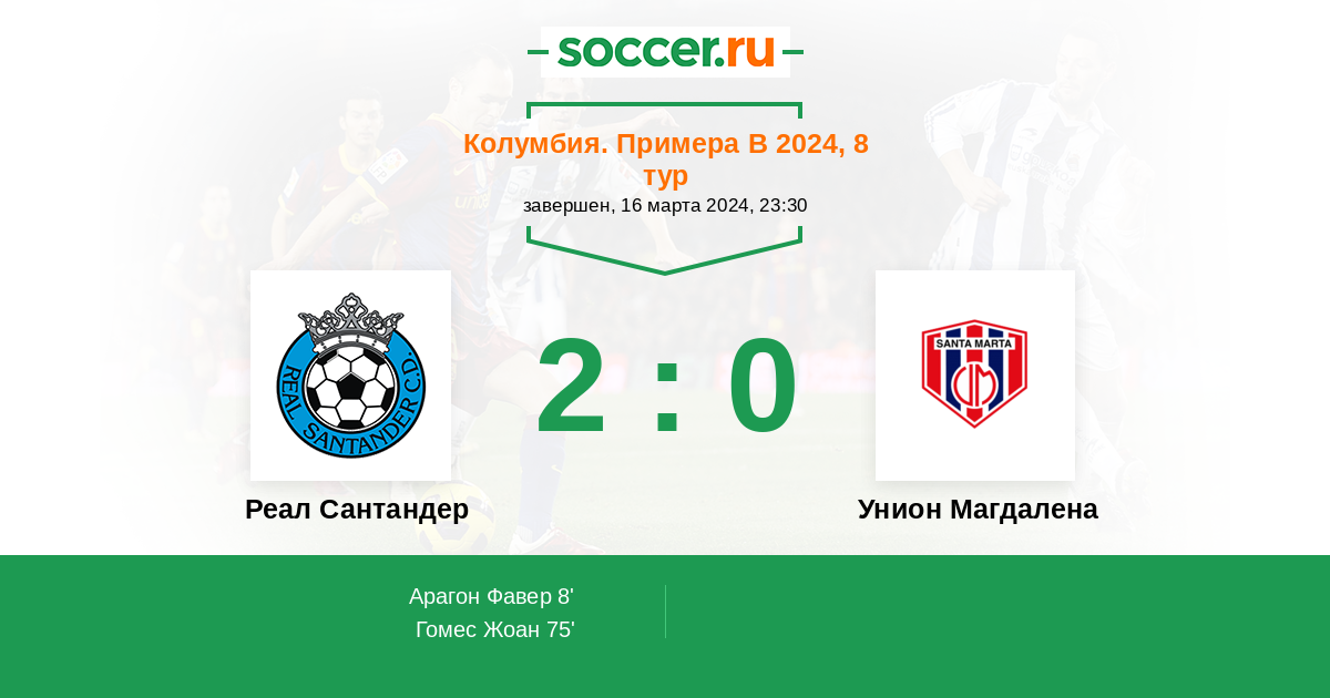 Протокол матча Реал Сантандер против Унион Магдалена