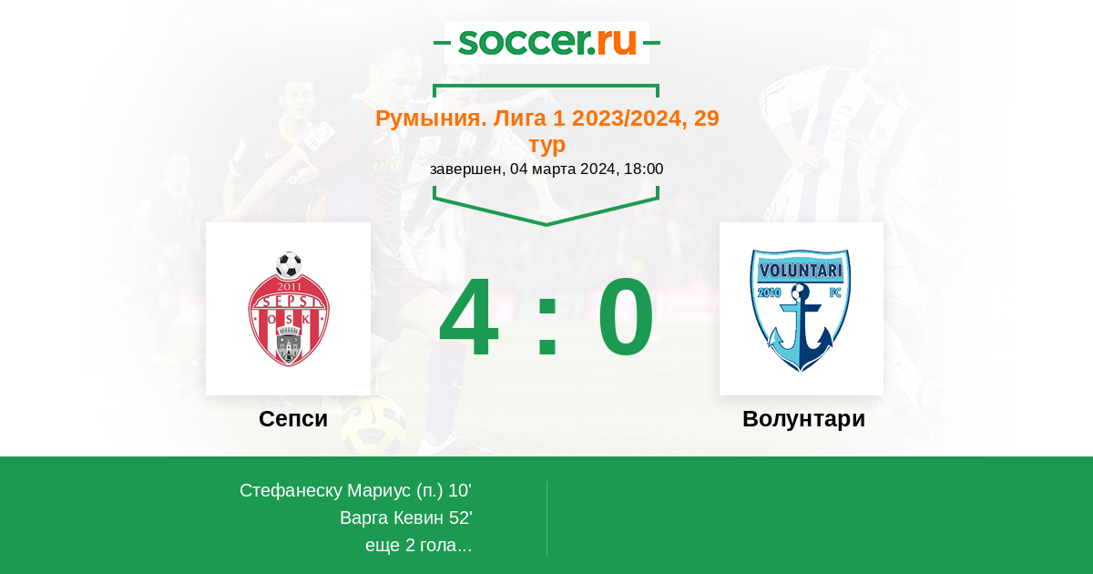 Протокол матча Сепси против Волунтари