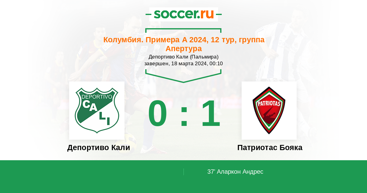 Протокол матча Депортиво Кали против Патриотас Бояка