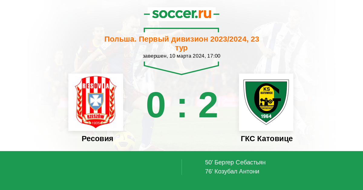 Протокол матча Ресовия против ГКС Катовице