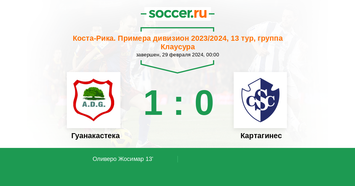 Протокол матча Гуанакастека против Картахинес