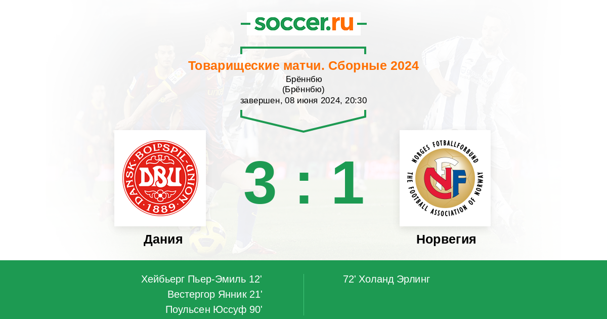 Протокол матча Дания против Норвегия