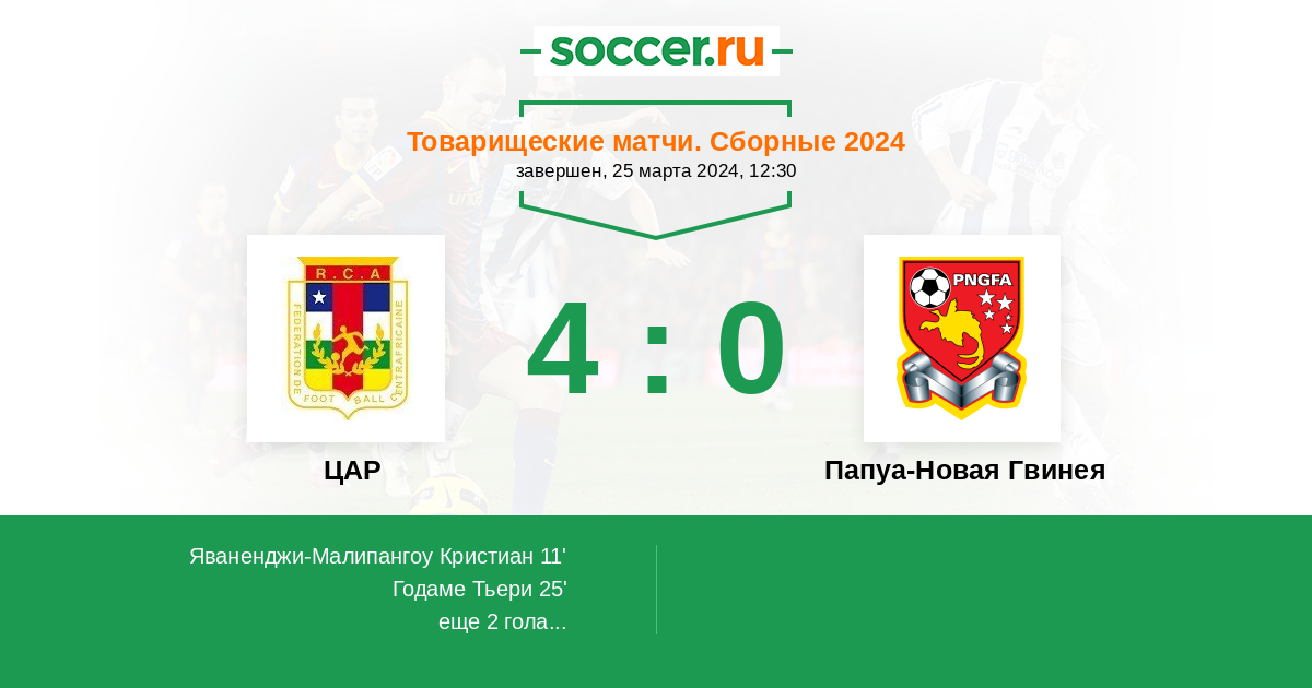 Протокол матча ЦАР против Папуа-Новая Гвинея