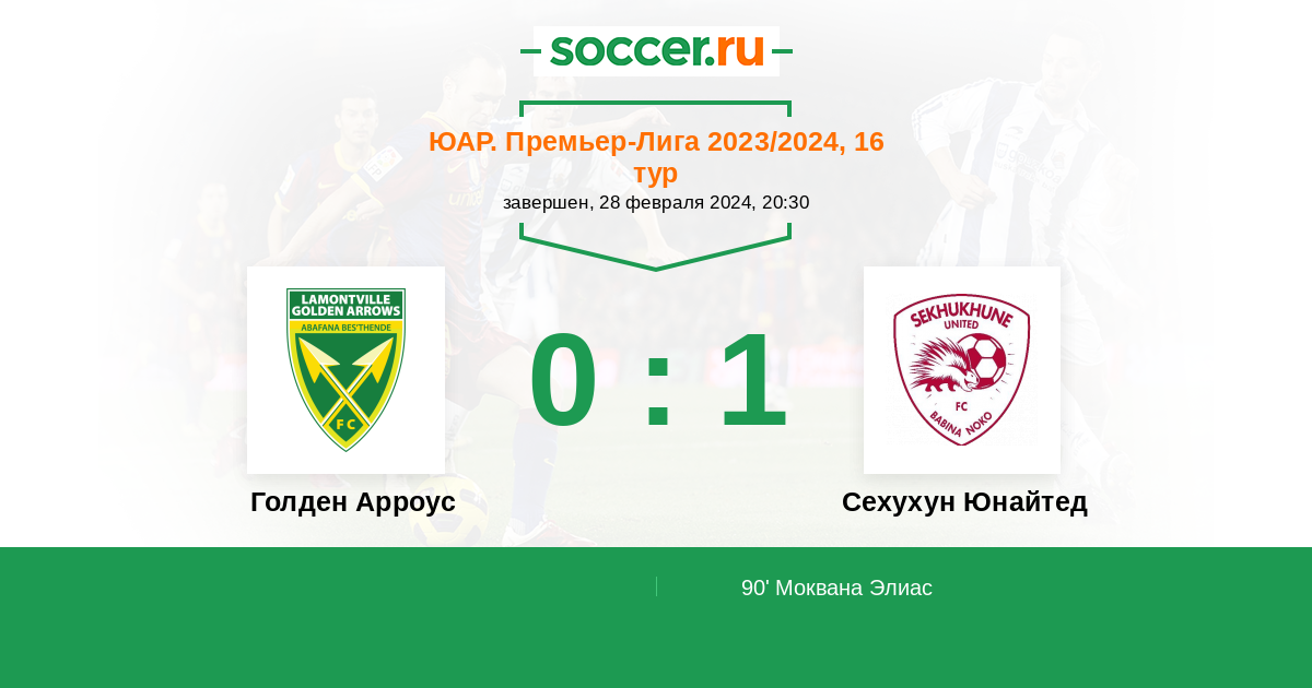 Протокол матча Голден Арроус против Сехухун Юнайтед