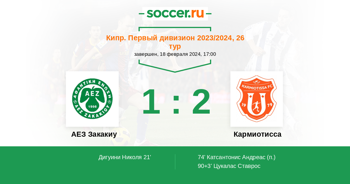 Протокол матча АЕЗ Закакиу против Кармиотисса