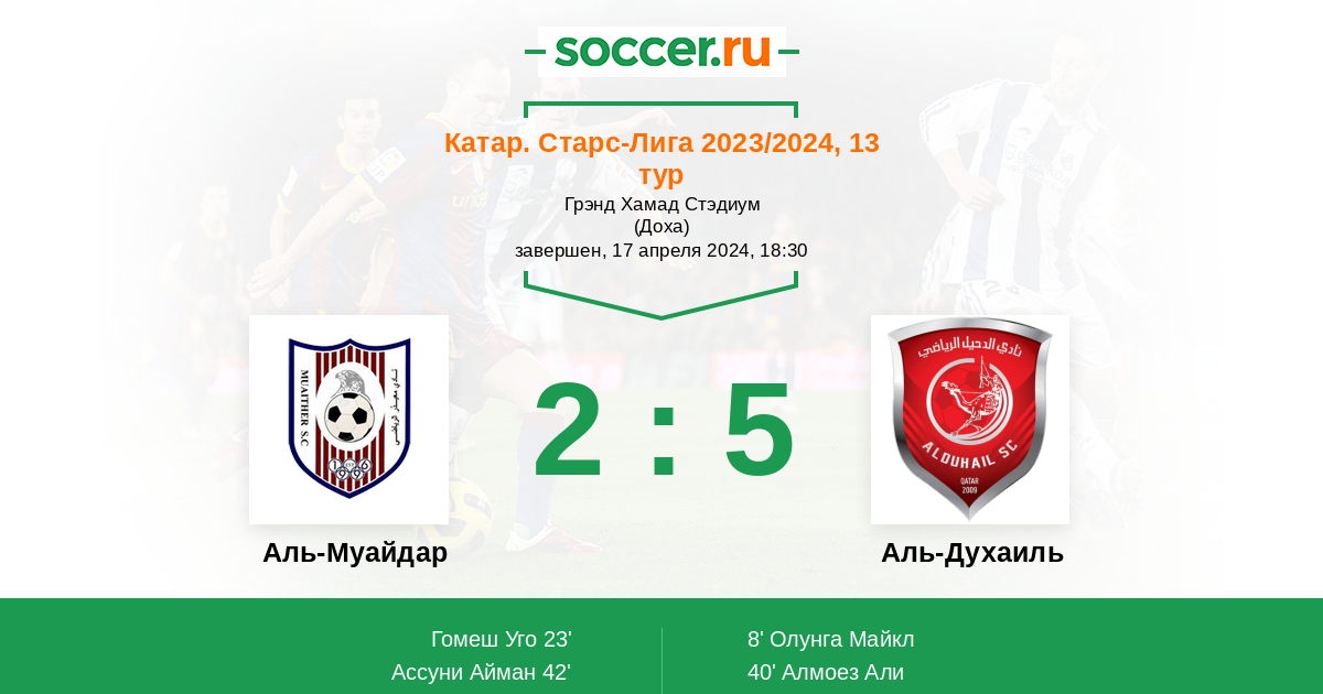 Протокол матча Аль-Муайдар против Аль-Духаиль