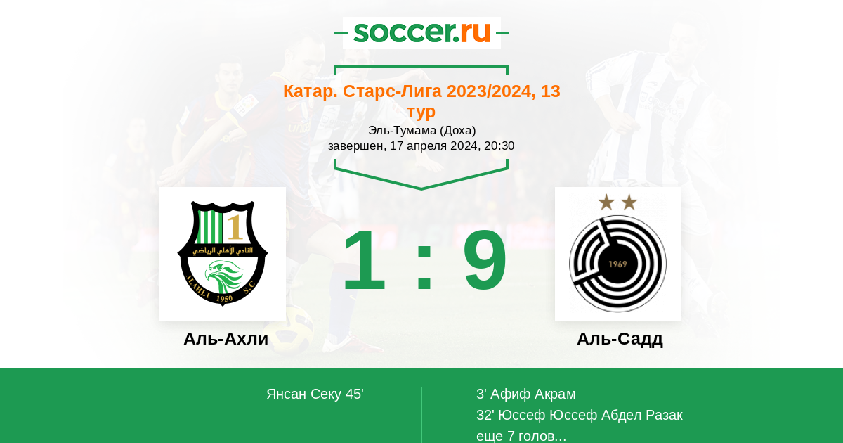 Протокол матча Аль-Ахли против Аль-Садд