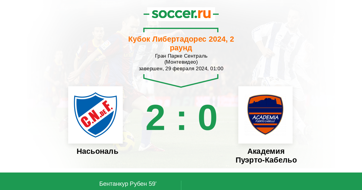 Протокол матча Насьональ против Пуэрто-Кабельо