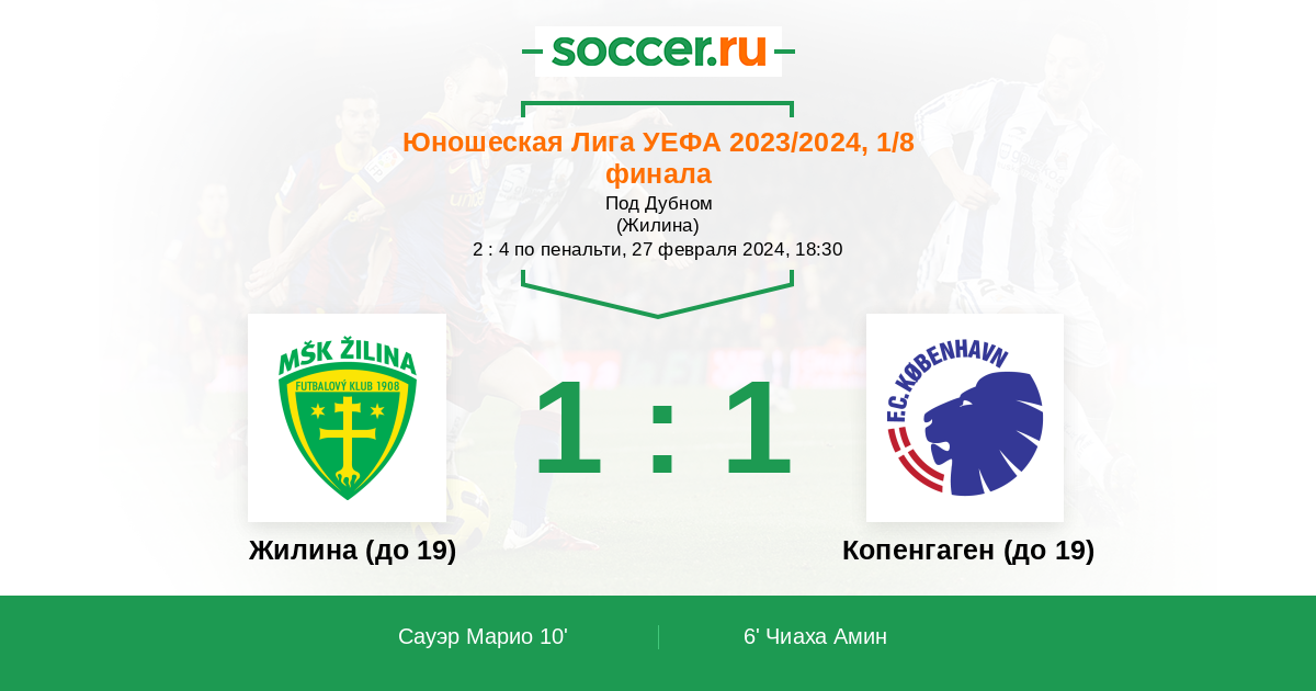 Протокол матча Жилина (до 19) против Копенгаген (до 19)