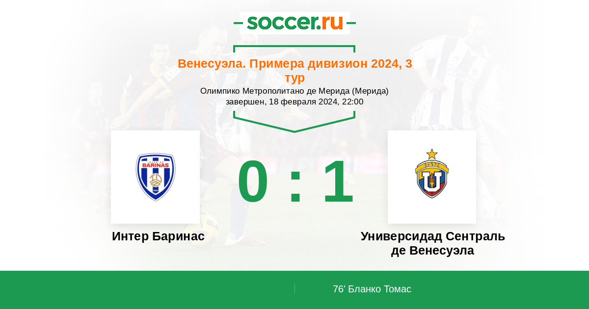 76' (0:1) Бланко Томас (9) (Гонсалес Александер (30))