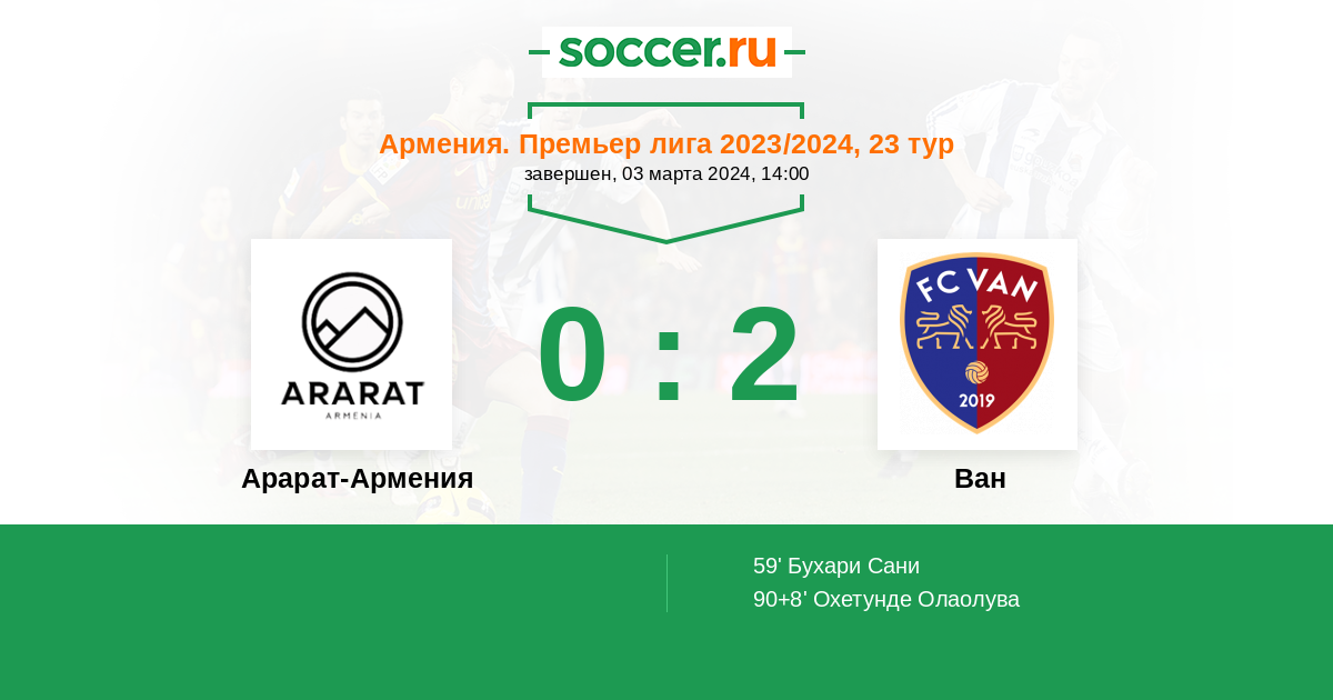 Протокол матча Арарат-Армения против Ван