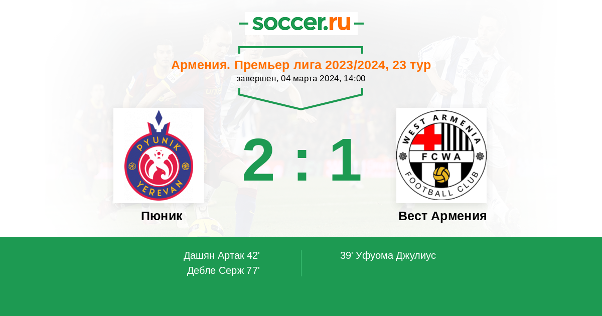 Протокол матча Пюник против Вест Армения