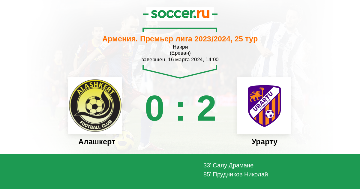 Протокол матча Алашкерт против Урарту