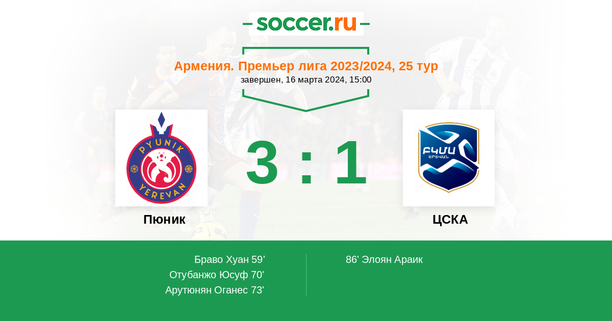 Протокол матча Пюник против ЦСКА
