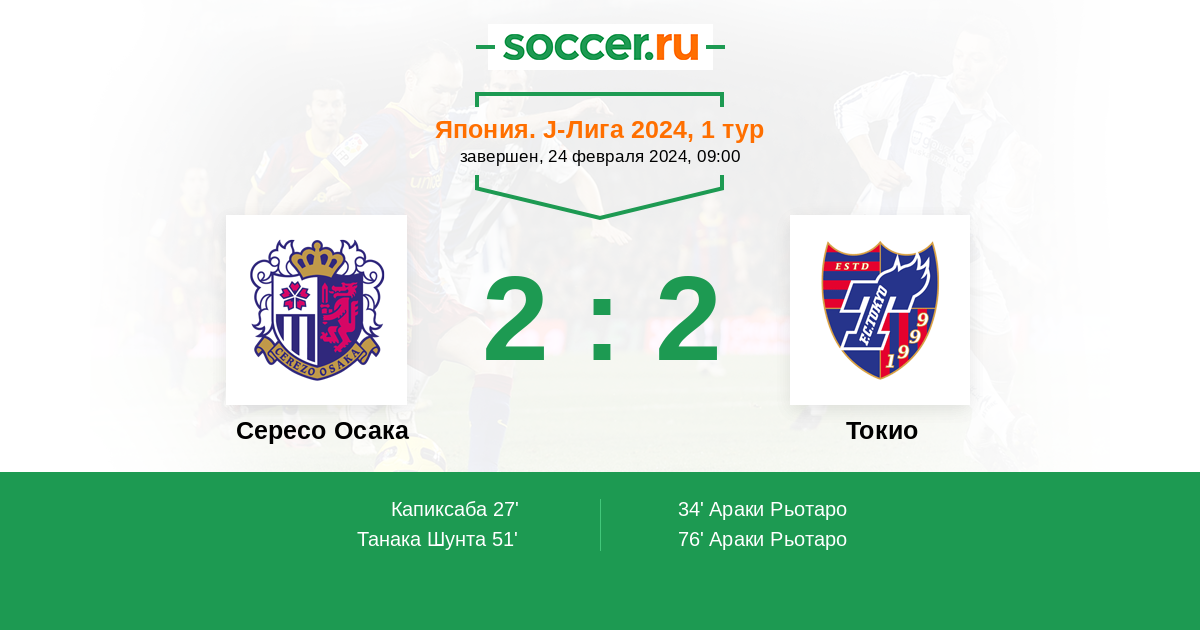 34’ 1:1 Араки Рьотаро
