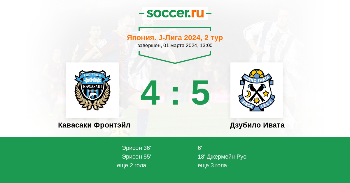 Протокол матча Кавасаки Фронтэйл против Дзубило Ивата