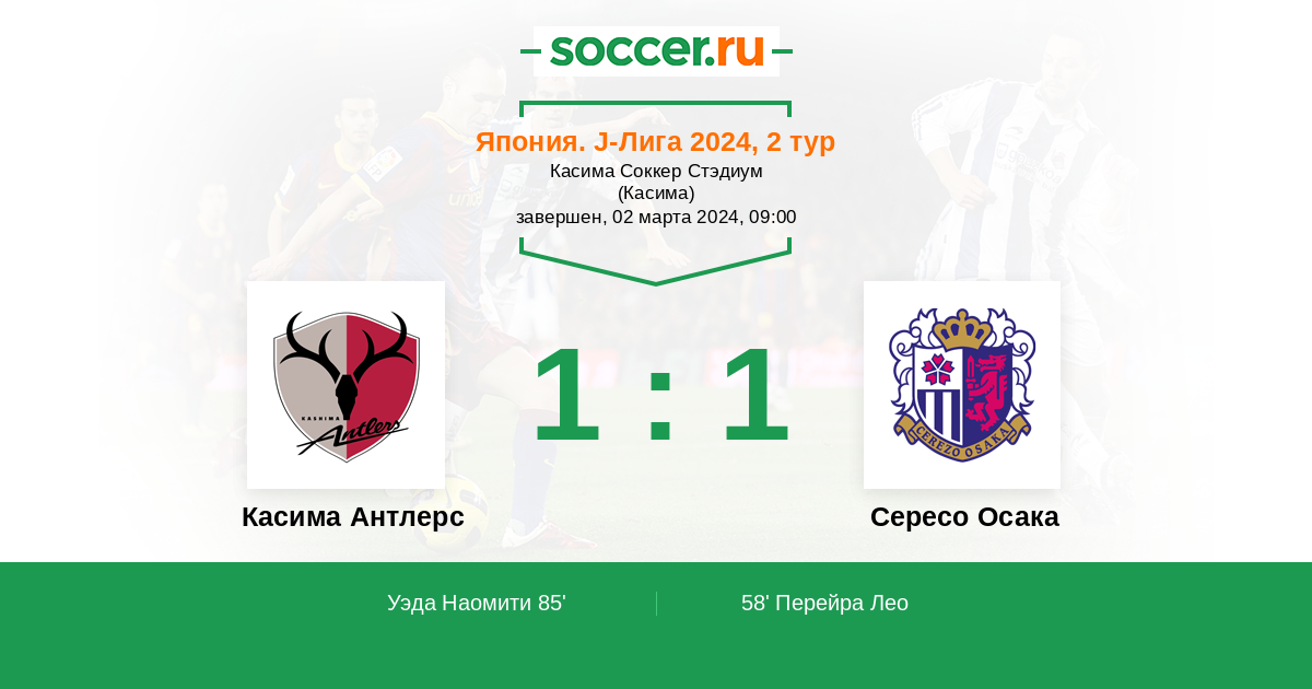 Протокол матча Касима Антлерс против Сересо Осака