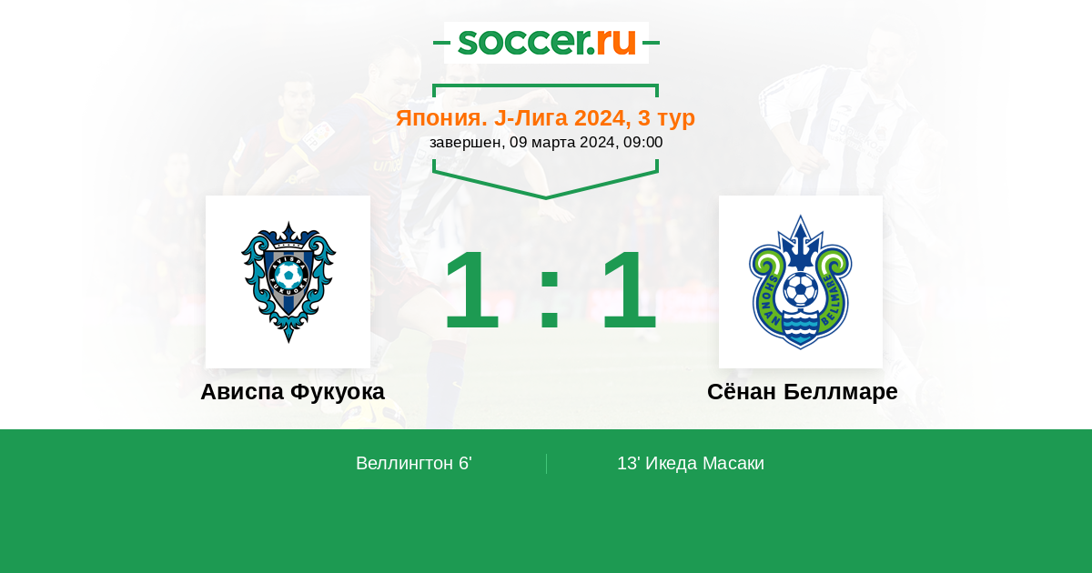 Протокол матча Ависпа Фукуока против Сёнан Беллмаре
