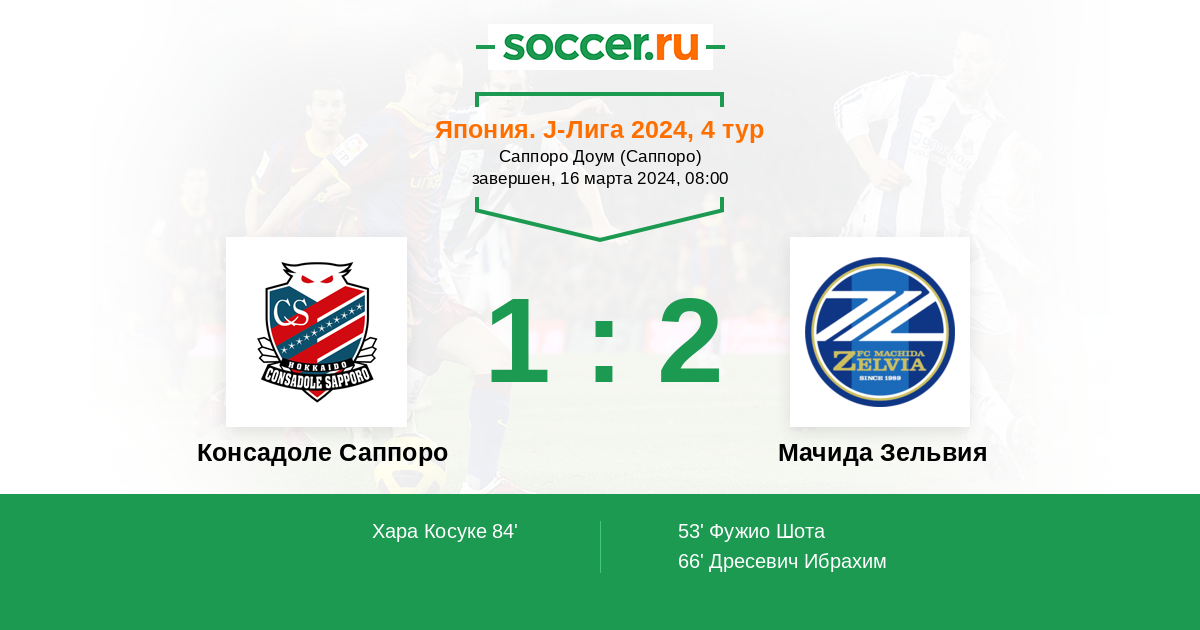 Протокол матча Консадоле Саппоро против Мачида Зельвия