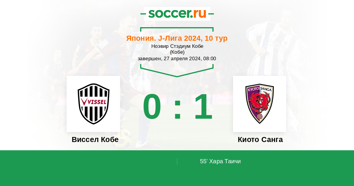 Протокол матча Виссел Кобе против Киото Санга