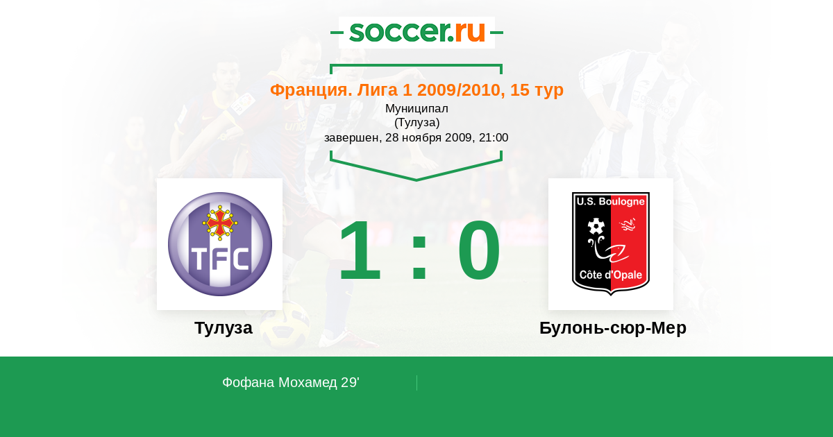 Протокол матча Тулуза против Булонь-сюр-Мер