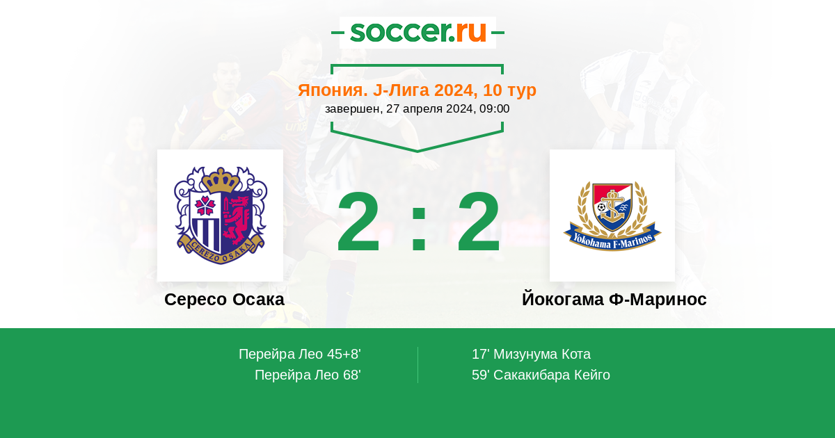 Протокол матча Сересо Осака против Йокогама Ф-Маринос