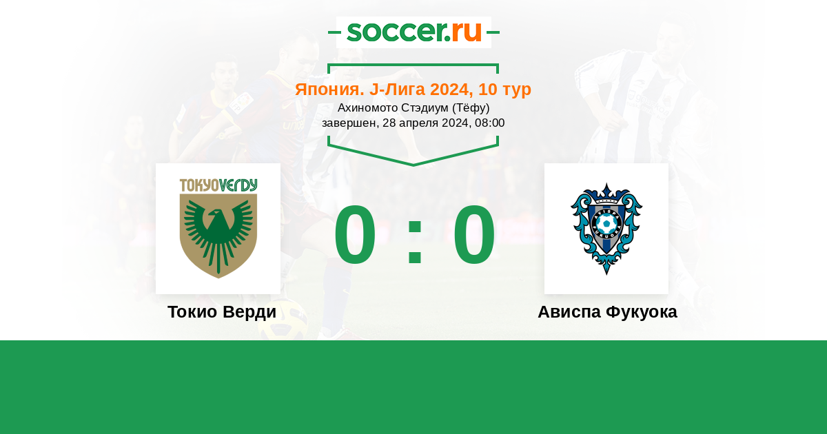 Протокол матча Токио Верди против Ависпа Фукуока