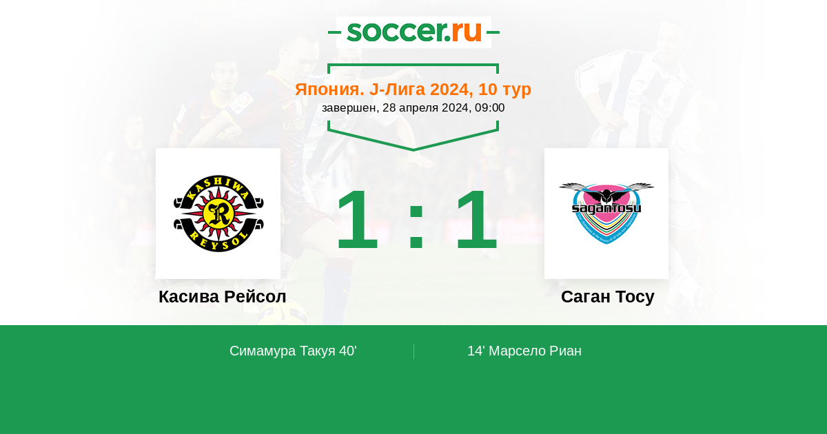 Протокол матча Касива Рейсол против Саган Тосу