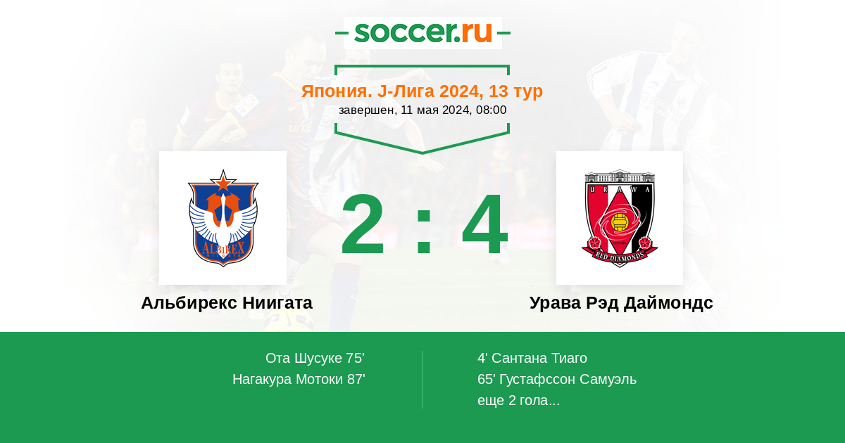 Протокол матча Альбирекс Ниигата против Урава Рэд Даймондс