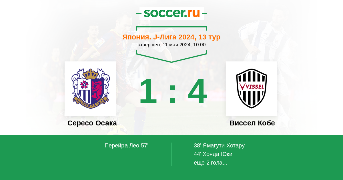Протокол матча Сересо Осака против Виссел Кобе