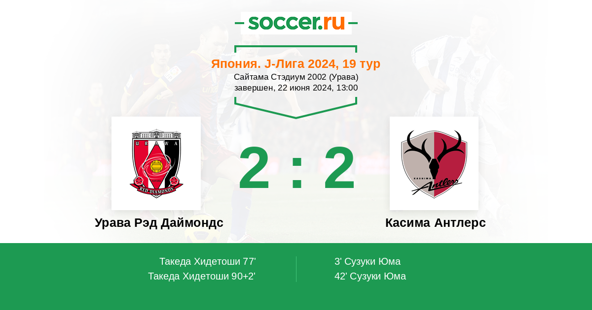Протокол матча Урава Рэд Даймондс против Касима Антлерс