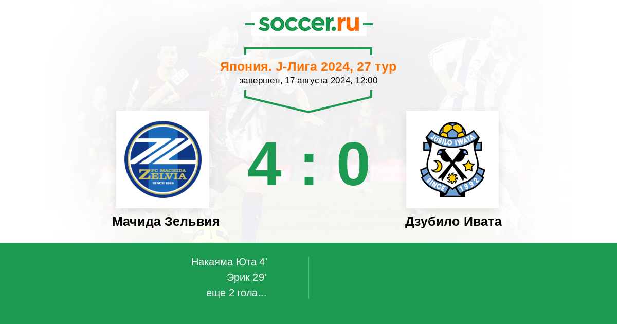 29' (2:0) Эрик (11) (Мочизуки Генри Хероки (33))