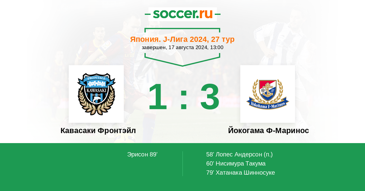 Протокол матча Кавасаки Фронтэйл против Йокогама Ф-Маринос