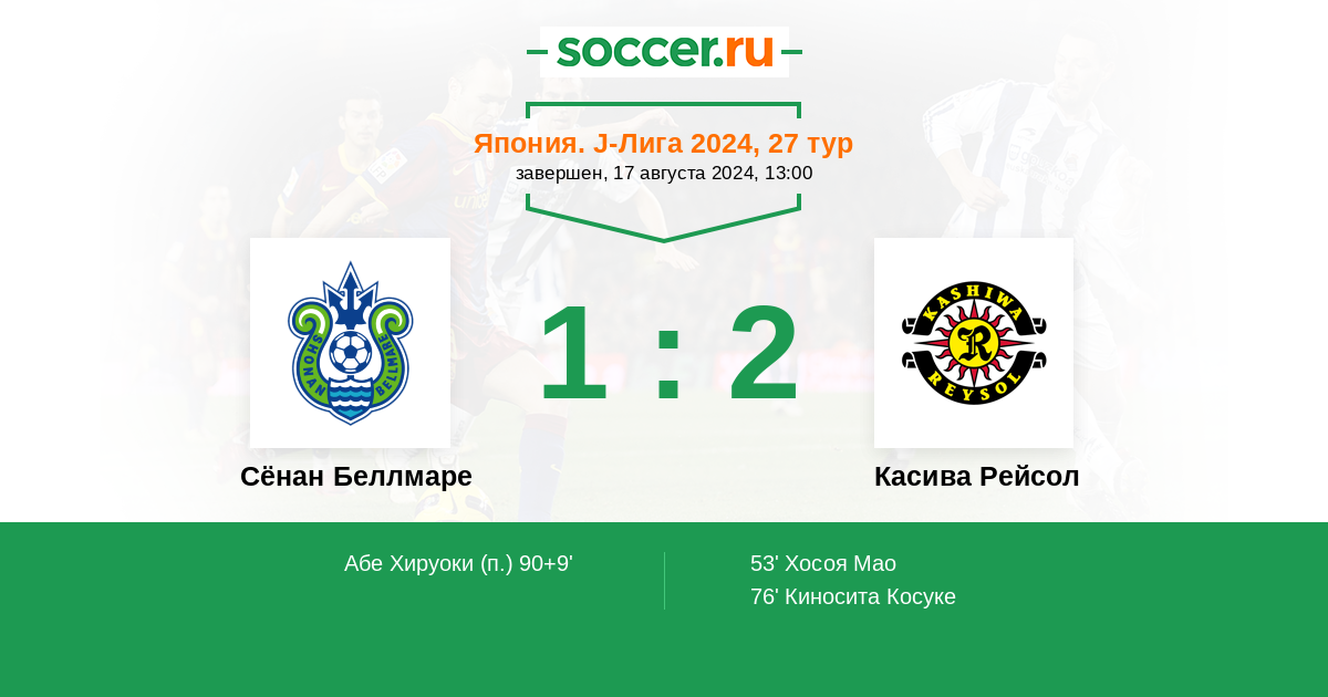Протокол матча Сёнан Беллмаре против Касива Рейсол