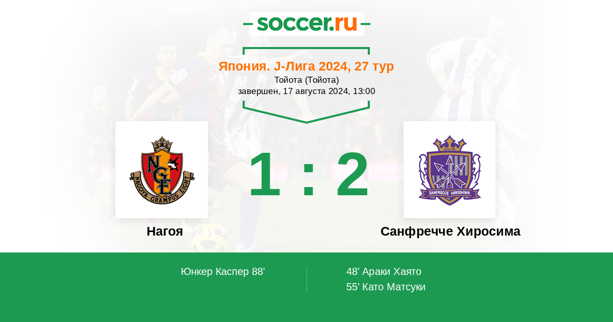 Протокол матча Нагоя против Санфречче Хиросима
