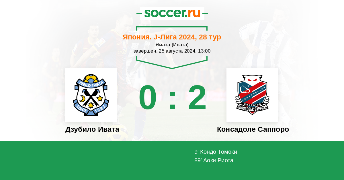 Протокол матча Дзубило Ивата против Консадоле Саппоро