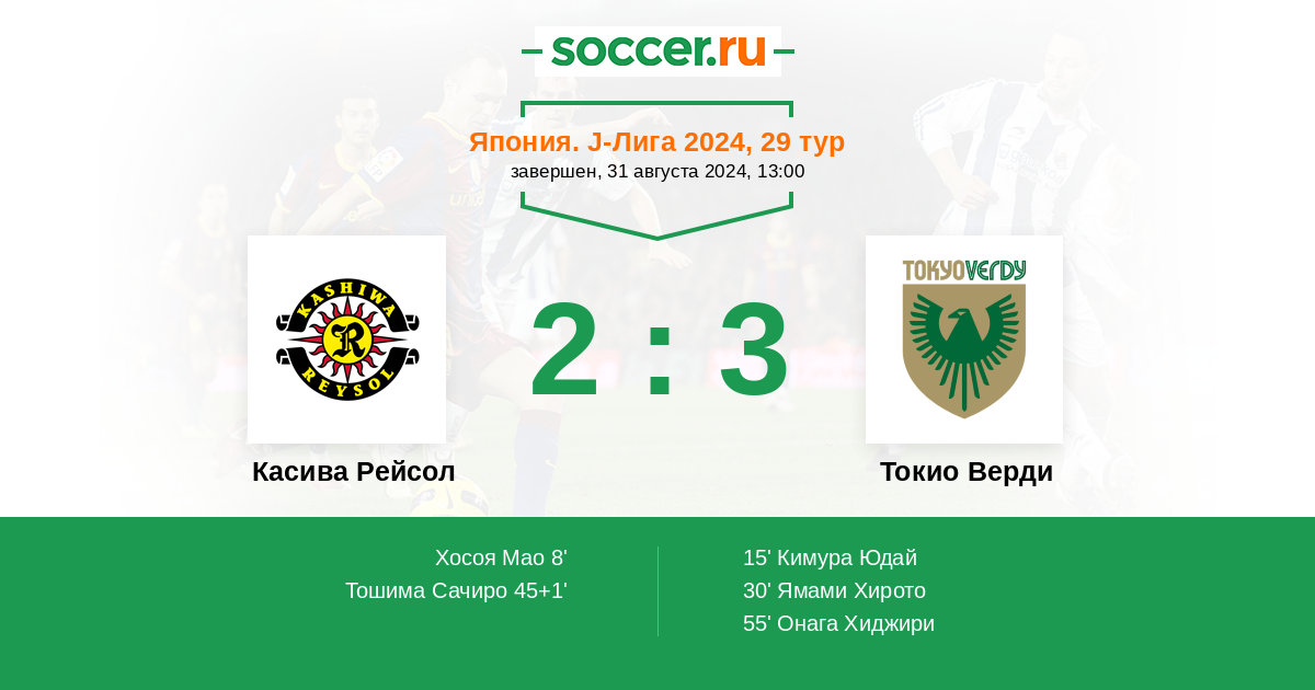 Протокол матча Касива Рейсол против Токио Верди