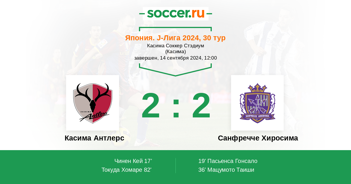 Протокол матча Касима Антлерс против Санфречче Хиросима