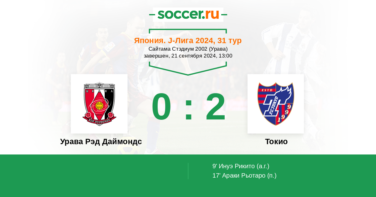 Протокол матча Урава Рэд Даймондс против Токио