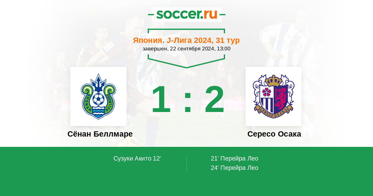 Протокол матча Сёнан Беллмаре против Сересо Осака