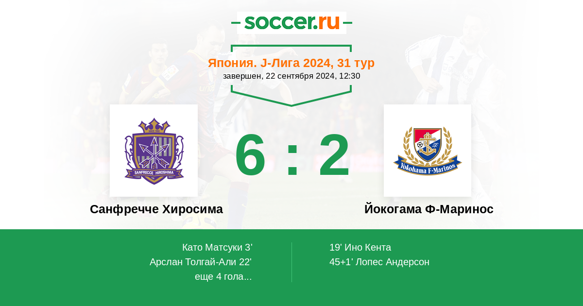 Протокол матча Санфречче Хиросима против Йокогама Ф-Маринос