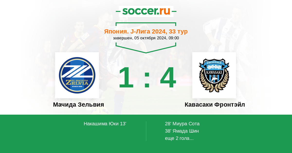 Протокол матча Мачида Зельвия против Кавасаки Фронтэйл